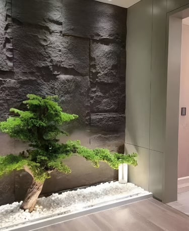 Je réalise des murs végétaux, cannelés, en pierre ou géométriques, entièrement personnalisables selon l’ambiance et l’image que vous souhaitez donner à votre espace.